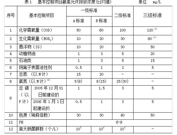 *注:(1)下列情況下按去除率指標(biāo)執(zhí)行:當(dāng)進(jìn)水COD大于350mg/L時,去除率應(yīng)大于60%.