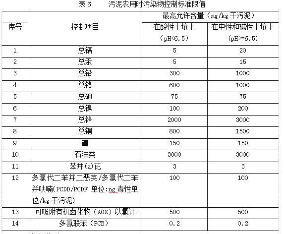 4.3.4處理后的污泥農(nóng)用時,其污染物含量應(yīng)滿足表6的要求。其施用條件須符合GB4284的有關(guān)規(guī)定。