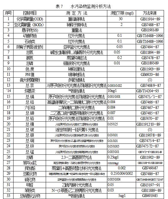 4.1.4.3監(jiān)測分析方法按表7或國家環(huán)境保護(hù)總局認(rèn)定的替代方法、等效方法執(zhí)行。